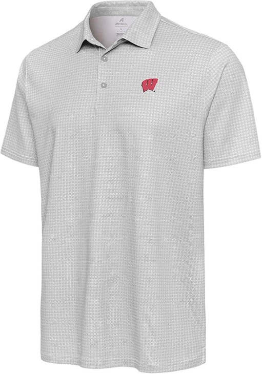 Mens Wisconsin Badgers White Antigua Primary Logo Short Sleeve Polo Shirt