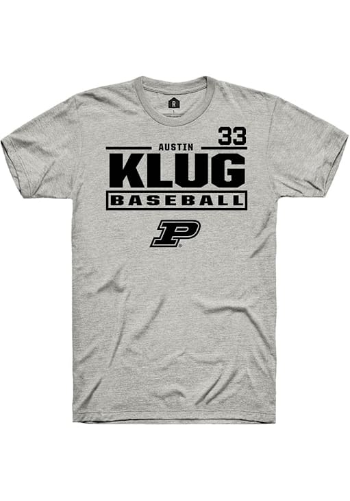 Austin Klug Ash Purdue Boilermakers NIL Stacked Box Short Sleeve T Shirt
