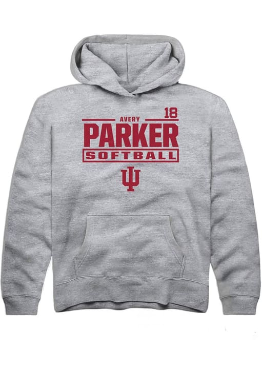 Avery Parker Rally Youth Grey Indiana Hoosiers NIL Stacked Box Long Sleeve Hooded Sweatshirt