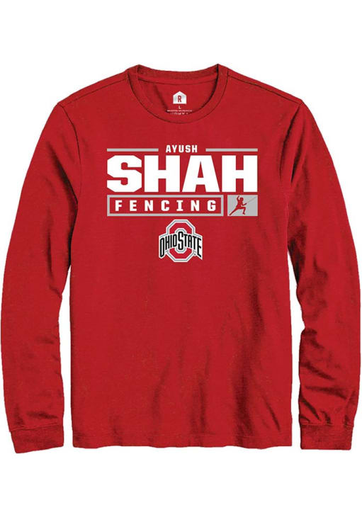 Ayush Shah Rally Mens Red Ohio State Buckeyes NIL Stacked Box Tee