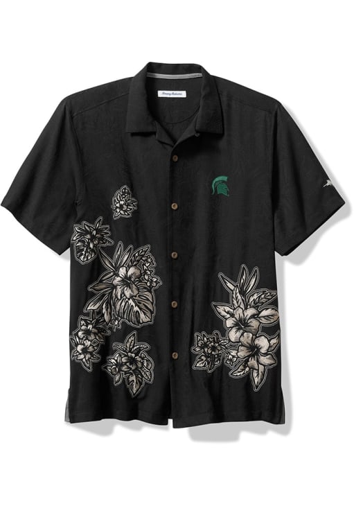 Mens Michigan State Spartans Black Tommy Bahama Hibiscus Vibrations Short Sleeve Dress Shirt
