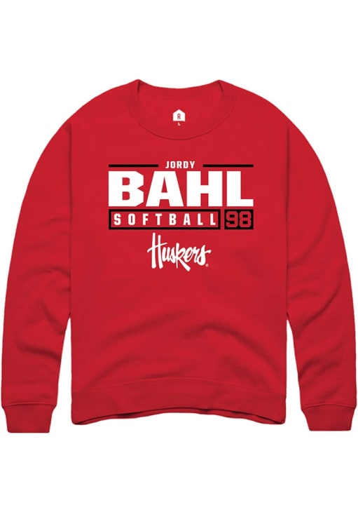 Jordy Bahl Rally Mens Red Nebraska Cornhuskers NIL Stacked Box Crew Sweatshirt