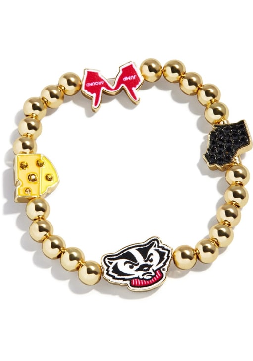 Product Details Product Details Classic gold pisa beads sit alongside spirited motifs, including the school logo,Wear this stretch bracelet solo or add it to your stackMeasurements: Inner circumference: 6.25". Bead Size: 6MM.Allergy Information: HypoallergenicMaterials: Glass stones, enamel. Gold plated brass. Officially Licensed Rally House is the place to go for your ideal Wisconsin Badgers Mixed Icon Pisa Womens Bracelet to showcase your Badgers spirit. Plus, this Bracelet features a team colors and team logo!