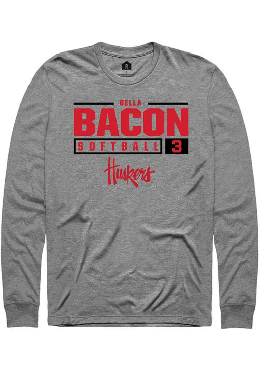 Bella Bacon Rally Mens Graphite Nebraska Cornhuskers NIL Stacked Box Tee