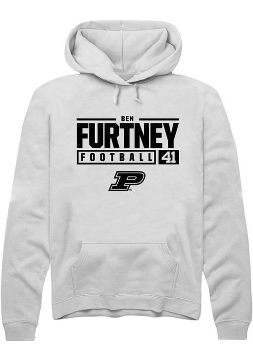 Ben Furtney Rally Mens White Purdue Boilermakers NIL Stacked Box Hooded Sweatshirt