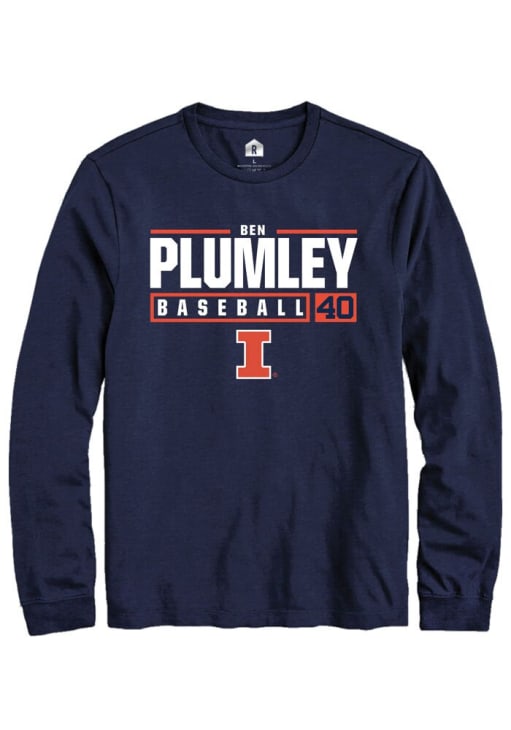 Ben Plumley Rally Mens Navy Blue Illinois Fighting Illini NIL Stacked Box Tee