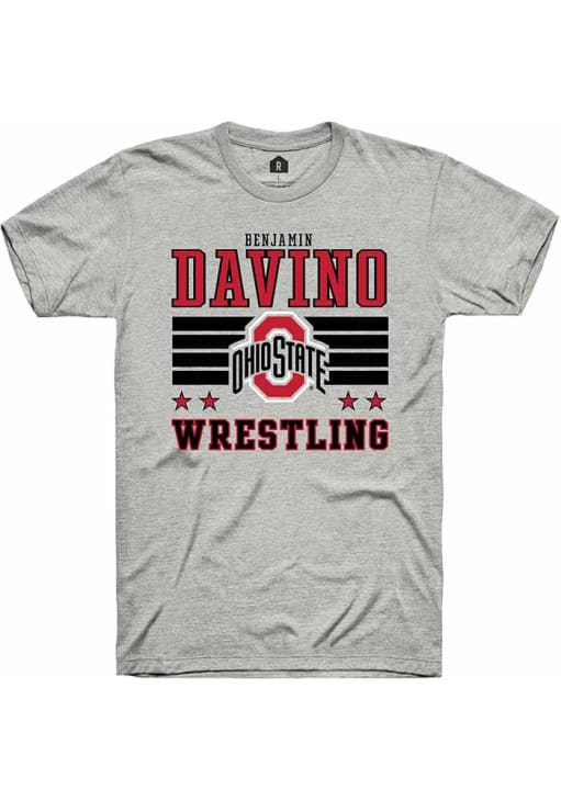 Benjamin Davino Ash Ohio State Buckeyes NIL Striped Short Sleeve T Shirt