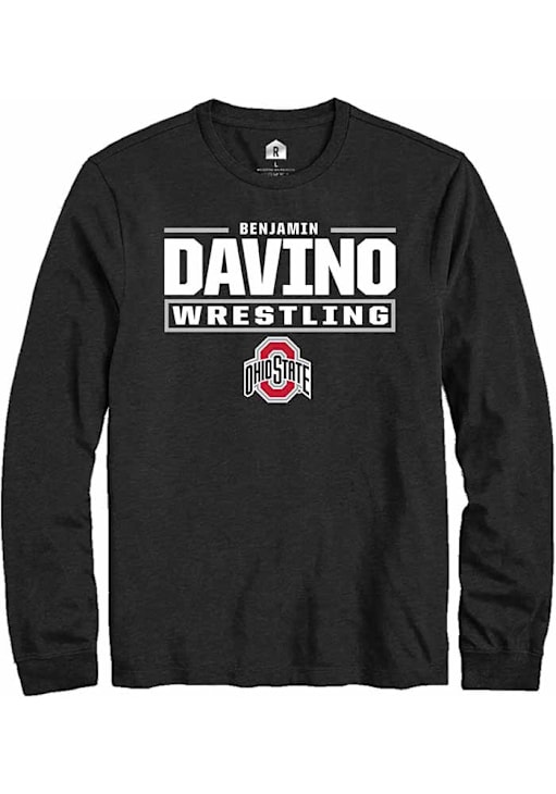 Benjamin Davino Rally Mens Black Ohio State Buckeyes NIL Stacked Box Tee