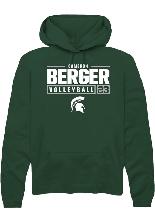 Cameron Berger Rally Mens Green Michigan State Spartans NIL Stacked Box Hooded Sweatshirt