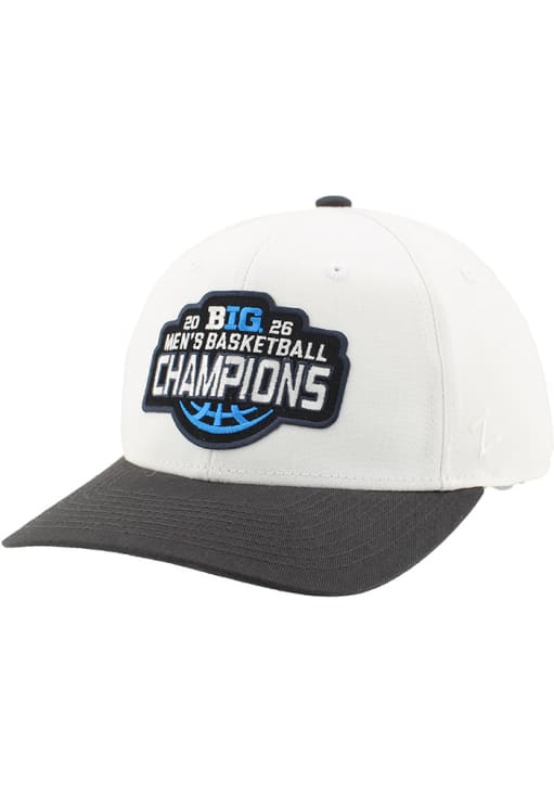 Product Details Product Details Zephyr 2026 Big Ten Men's Basketball Tournament Champs Basis2026 Big Ten Men's Basketball Champs Locker Room designSix panel design with eyeletsSide Zephyr logoBack snap plastic closureCottonCurved BillLow CrownStructuredWipe clean with cloth or cleaning kitImported Officially Licensed This White Big Ten Adjustable Hat features a 2026 Big Ten Men's Basketball Champs Locker Room design.