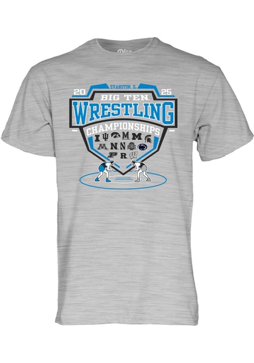 Display your team spirit with this remarkable Big Ten Blue 84 Grey 2025 Big Ten Wrestling Tournament Short Sleeve T Shirt! The Big Ten Short Sleeve Tee showcases a screen print team and event graphic across chest that truly sets it apart. Stand out from the crowd and proudly declare your allegiance to the Big Ten with this exceptional Grey Big Ten T Shirt. !