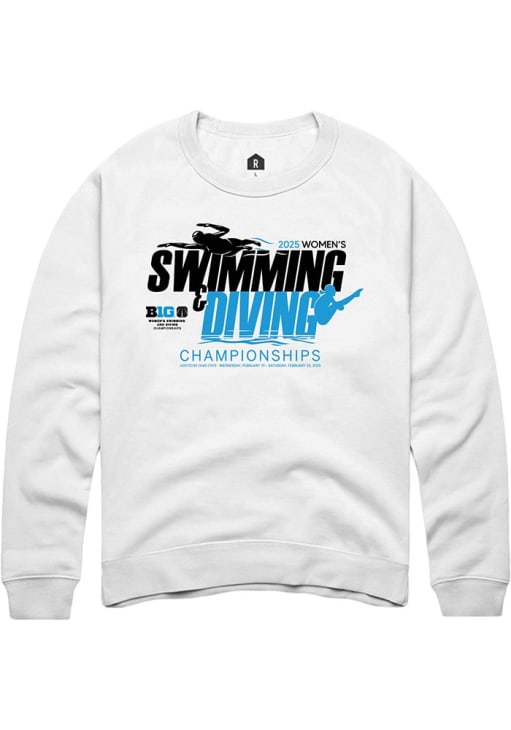 Mens Big Ten White Rally 2025 Womens Swimming & Diving Championship Crew Sweatshirt