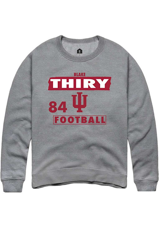 Support your Indiana Hoosiers and favorite Blake Thiry in this Indiana Hoosiers Mens Grey Football NIL Striped Player Crew. This Crew Sweatshirt features a NIL graphic, and is sure to stand out in the stadium. Perfect to wear on game day or any day!
