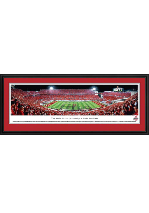 This Ohio State Buckeyes Ohio Stadium Script Deluxe Framed Posters is a great way to show your Buckeyes pride in your home. This Framed Posters features a panoramic view from the 50 yard line of Ohio Stadium during the marching band's "Script Ohio".