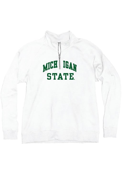 Embrace the warmth and showcase your Spartans pride with our Michigan State Spartans Long Sleeve Qtr Zip. This Womens White Sanded Fleece Long Sleeve Pullover offers a applique team name on center chest for the perfect combination of comfort and style. Elevate your everyday look with this must-have Michigan State Spartans Long Sleeve Qtr Zip.