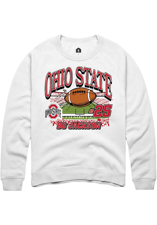 Support your Ohio State Buckeyes and favorite Bo Jackson in this Ohio State Buckeyes Mens White NIL Name Number Net Player Crew. This Crew Sweatshirt features a NIL graphic, and is sure to stand out in the stadium. Perfect to wear on game day or any day!