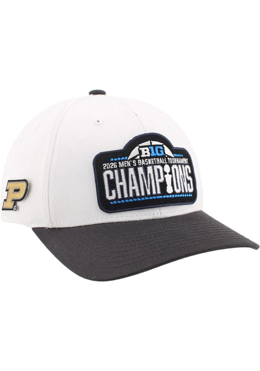 Product Details Product Details Zephyr 2026 Big Ten Men's Basketball Tournament Champs Basis2026 Big Ten Men's Basketball Champs Locker Room designSide embroidered team logoSide Zephyr logoBack snap plastic closureCottonCurved BillLow CrownStructuredWipe clean with cloth or cleaning kitImported Officially Licensed This White Boilermakers Adjustable Hat features a 2026 Big Ten Men's Basketball Champs Locker Room design.
