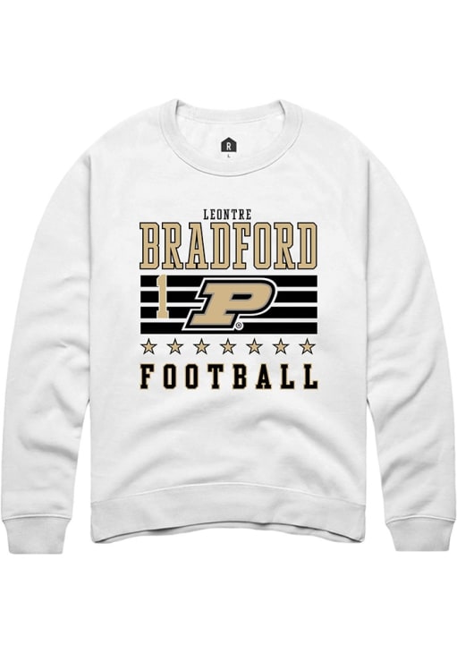 LeonTre Bradford Rally Mens White Purdue Boilermakers Football NIL Striped Crew Sweatshirt