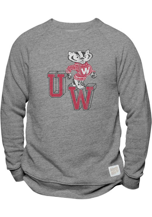 Gear up for the ultimate game day experience with this remarkable Wisconsin BadgersMens Grey Vintage Bucky Triblend Fashion Sweatshirt! Designed with the true fan in mind, this Badgers Long Sleeve Sweatshirt features a screen printed team graphic across chest. Stay warm and comfortable with this Mens Wisconsin Badgers Fashion Sweatshirt.