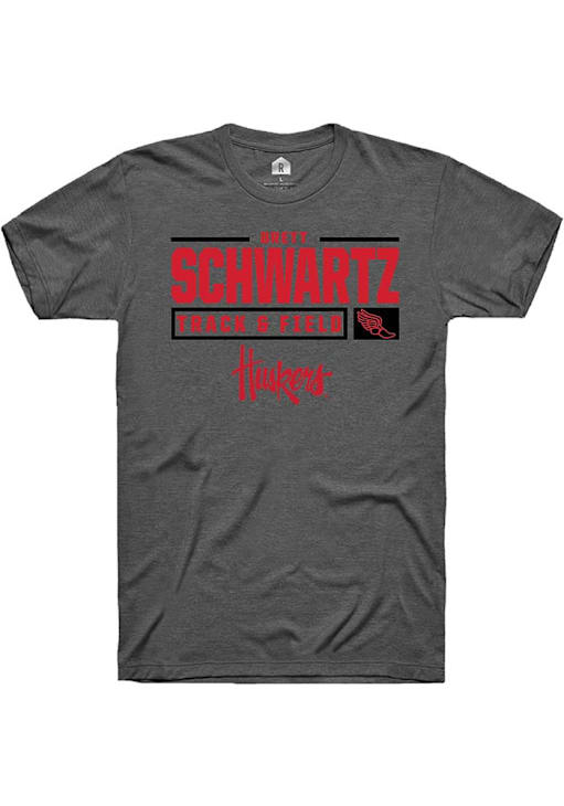 Brett Schwartz Dark Grey Nebraska Cornhuskers NIL Stacked Box Short Sleeve T Shirt