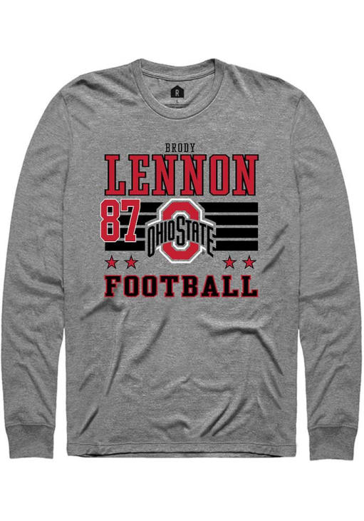 Embrace the spirit of your favorite player in this Ohio State Buckeyes Grey Football NIL Striped Brody Lennon Long Sleeve Player Tee! This Player T Shirt features a NIL graphic, so everyone will know you cheer for The Ohio State University, Brody Lennon! This is the perfect Buckeyes Player Tee for game days. Go Buckeyes!