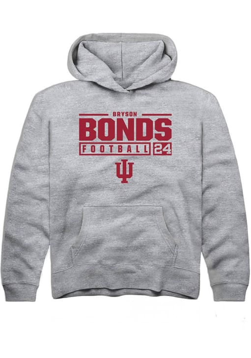 Bryson Bonds Rally Youth Grey Indiana Hoosiers NIL Stacked Box Long Sleeve Hooded Sweatshirt
