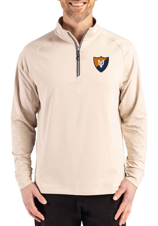 Mens Illinois Fighting Illini Brown Cutter and Buck Vault Adapt Eco Knit Qtr Zip Pullover