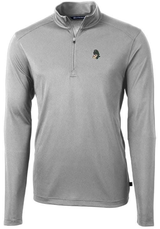 Embrace the warmth and showcase your Spartans pride with our Michigan State Spartans Long Sleeve Qtr Zip Pullover. This Mens Grey Vault Virtue Eco Pique Long Sleeve Pullover offers a vault team logo for the perfect combination of comfort and style. Elevate your everyday look with this must-have Michigan State Spartans Long Sleeve Qtr Zip Pullover.