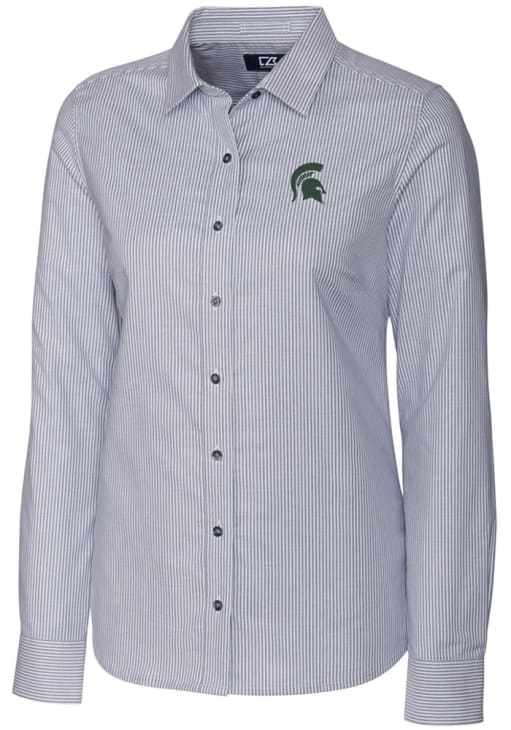 Show your Spartans spirit show in the office with this Michigan State Spartans Dress Shirt! Embrace your team spirit and showcase it proudly in this Womens Charcoal Stretch Oxford Stripe Long Sleeve Long Sleeve Button Down Shirt. This Long Sleeve Dress Shirt features a high quality Easy Care Stretch fabric.