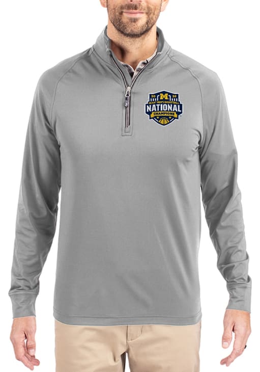 Mens Michigan Wolverines Anthracite Cutter and Buck 2026 MBB Champions Adapt Eco Qtr Zip
