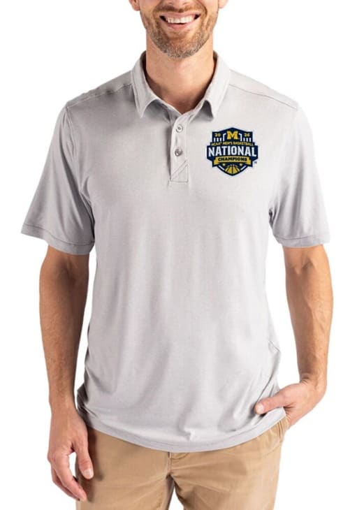 Mens Michigan Wolverines Anthracite Cutter and Buck 2026 MBB Champions Coastline Eco Short Sleeve..