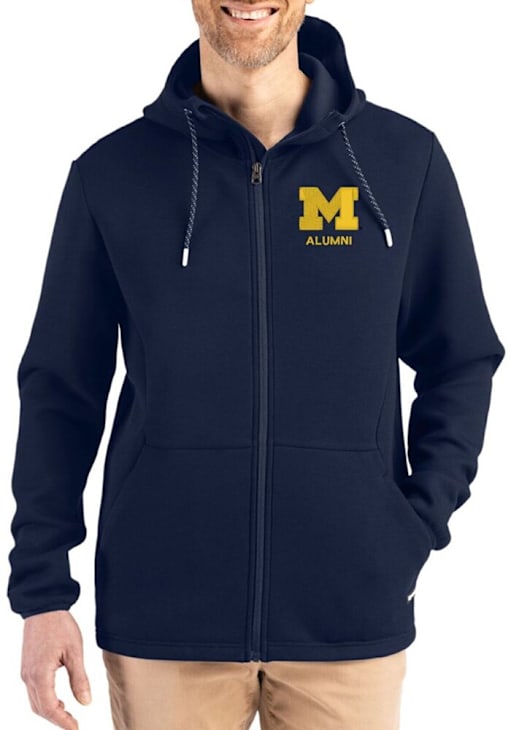 Size Chart for Mens Michigan Wolverines Navy Blue Cutter and Buck Alumni Epic Comfort Full Zip Light Weight Jacke..