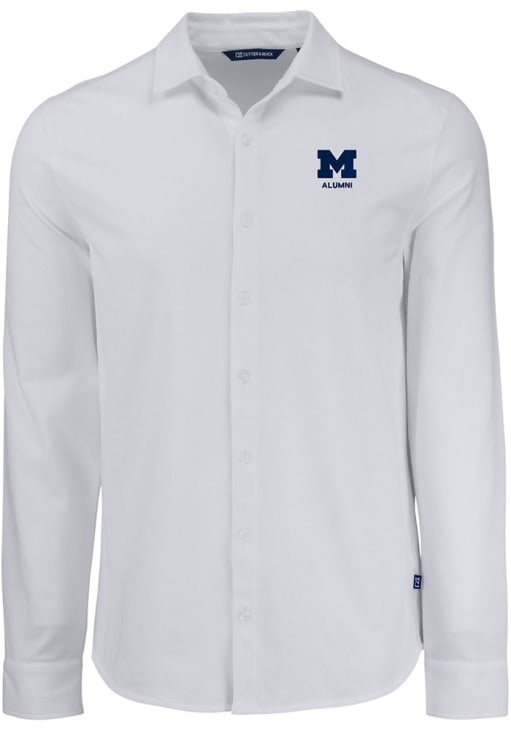 Show your Wolverines spirit show in the office with this Michigan Wolverines Dress Shirt! Embrace your team spirit and showcase it proudly in this Mens White Alumni Advantage Soft Pique Long Sleeve Long Sleeve Button Down Shirt. This Long Sleeve Dress Shirt features a team logo on chest.