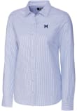 Show your Wolverines spirit show in the office with this Michigan Wolverines Dress Shirt! Embrace your team spirit and showcase it proudly in this Womens Light Blue Stretch Oxford Stripe Long Sleeve Long Sleeve Button Down Shirt. This Long Sleeve Dress Shirt features a college vault logo.
