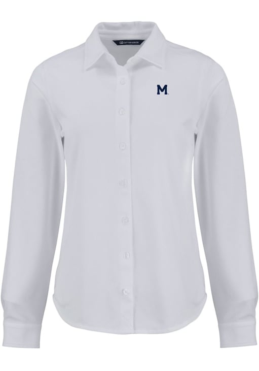 Show your Wolverines spirit show in the office with this Michigan Wolverines Dress Shirt! Embrace your team spirit and showcase it proudly in this Womens White Vault Advantage Soft Pique Long Sleeve Long Sleeve Button Down Shirt. This Long Sleeve Dress Shirt features a team logo on chest.