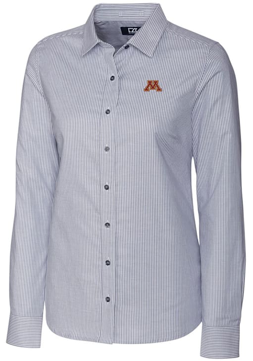Show your Golden Gophers spirit show in the office with this Minnesota Golden Gophers Dress Shirt! Embrace your team spirit and showcase it proudly in this Womens Charcoal Stretch Oxford Stripe Long Sleeve Long Sleeve Button Down Shirt. This Long Sleeve Dress Shirt features a high quality Easy Care Stretch fabric.