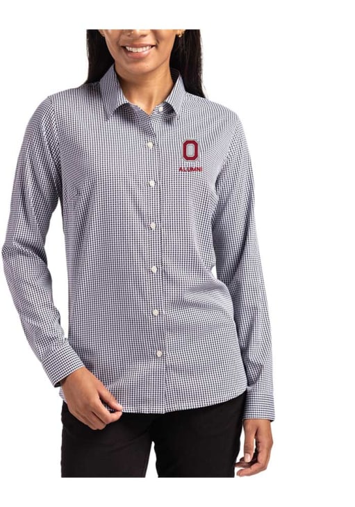 Show your Buckeyes spirit show in the office with this Ohio State Buckeyes Dress Shirt! Embrace your team spirit and showcase it proudly in this Womens Black Alumni Epic Confidence Gingham Long Sleeve Long Sleeve Button Down Shirt. This Long Sleeve Dress Shirt features a team logo.