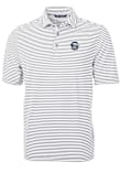 Mens Penn State Nittany Lions Grey Cutter and Buck Vault Virtue Eco Pique Stripe Short Sleeve Polo..