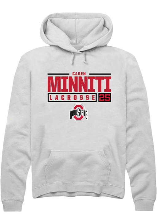 Caden Minniti Rally Mens White Ohio State Buckeyes NIL Stacked Box Hooded Sweatshirt
