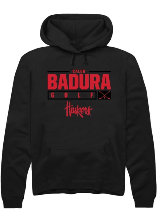 Caleb Badura Rally Mens Black Nebraska Cornhuskers NIL Stacked Box Hooded Sweatshirt