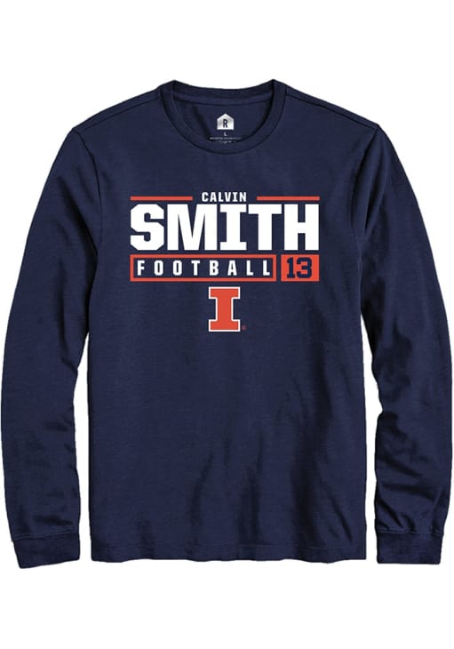 Calvin Smith Rally Mens Navy Blue Illinois Fighting Illini NIL Stacked Box Tee