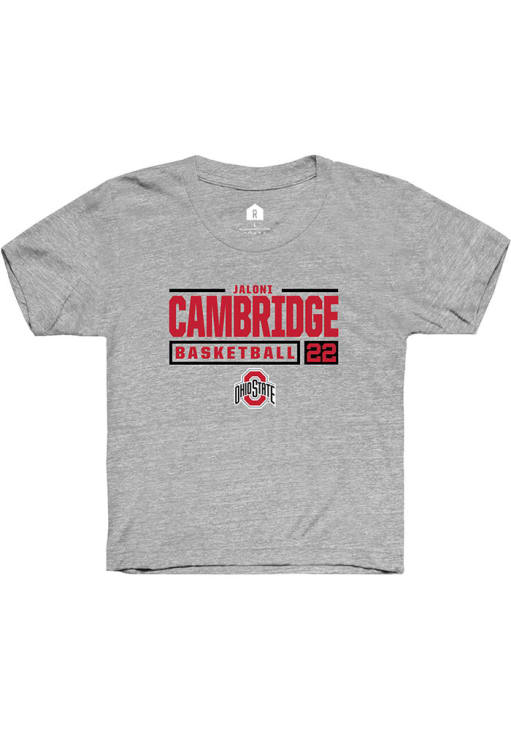 Jaloni Cambridge Rally Youth Grey Ohio State Buckeyes NIL Stacked Box Short Sleeve T-Shirt