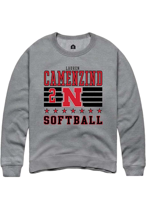 Lauren Camenzind Rally Mens Grey Nebraska Cornhuskers NIL Striped Crew Sweatshirt