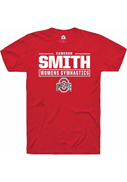 Cameron Smith Red Ohio State Buckeyes NIL Stacked Box Short Sleeve T Shirt