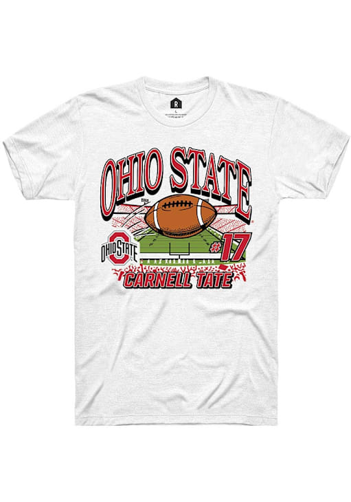 There will be no mistaking your The Ohio State University support when you wear this Ohio State Buckeyes Mens White NIL Name Number Net Short Sleeve! Look great and stand out from the crowd in this Ohio State Buckeyes Player T Shirt, which features a NIL graphic.