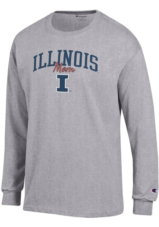 Show your Illinois Fighting Illini spirit in this Illinois Grey T Shirt! This Illinois Mom Script Jersey Long Sleeve T Shirt makes a great layer for cooler nights cheering on the Fighting Illini. Featuring a printed team graphic on front chest, this Illinois Fighting Illini Long Sleeve Tee is an essential addition for every fan. Go, Illini, Go!