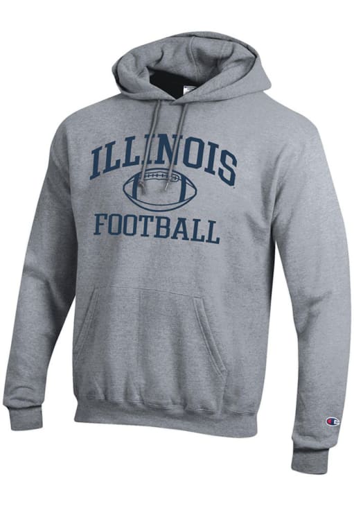 Mens Illinois Fighting Illini Grey Champion Football Football Powerblend Hooded Sweatshirt