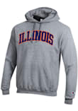 Mens Illinois Fighting Illini Grey Champion Powerblend Twill Hooded Sweatshirt
