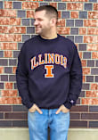 Gear up for the ultimate game day experience with this remarkable Illinois Fighting IlliniMens Navy Blue Arch Mascot Crew Sweatshirt! Designed with the true fan in mind, this Fighting Illini Long Sleeve Crew Sweatshirt features a screen printed Illinois name arched over team logo on front chest. Stay warm and comfortable with this Mens Illinois Fighting Illini Crew Sweatshirt.