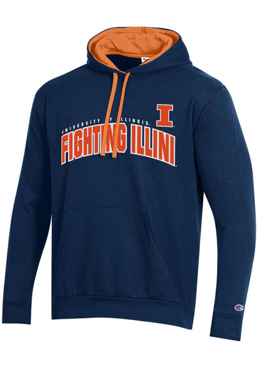 Mens Illinois Fighting Illini Navy Blue Champion Stadium Fleece Hooded Sweatshirt